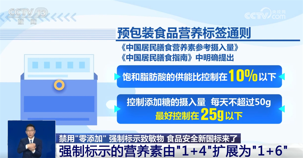 新的尺度将强制标示的养分素范畴由“1+4”,